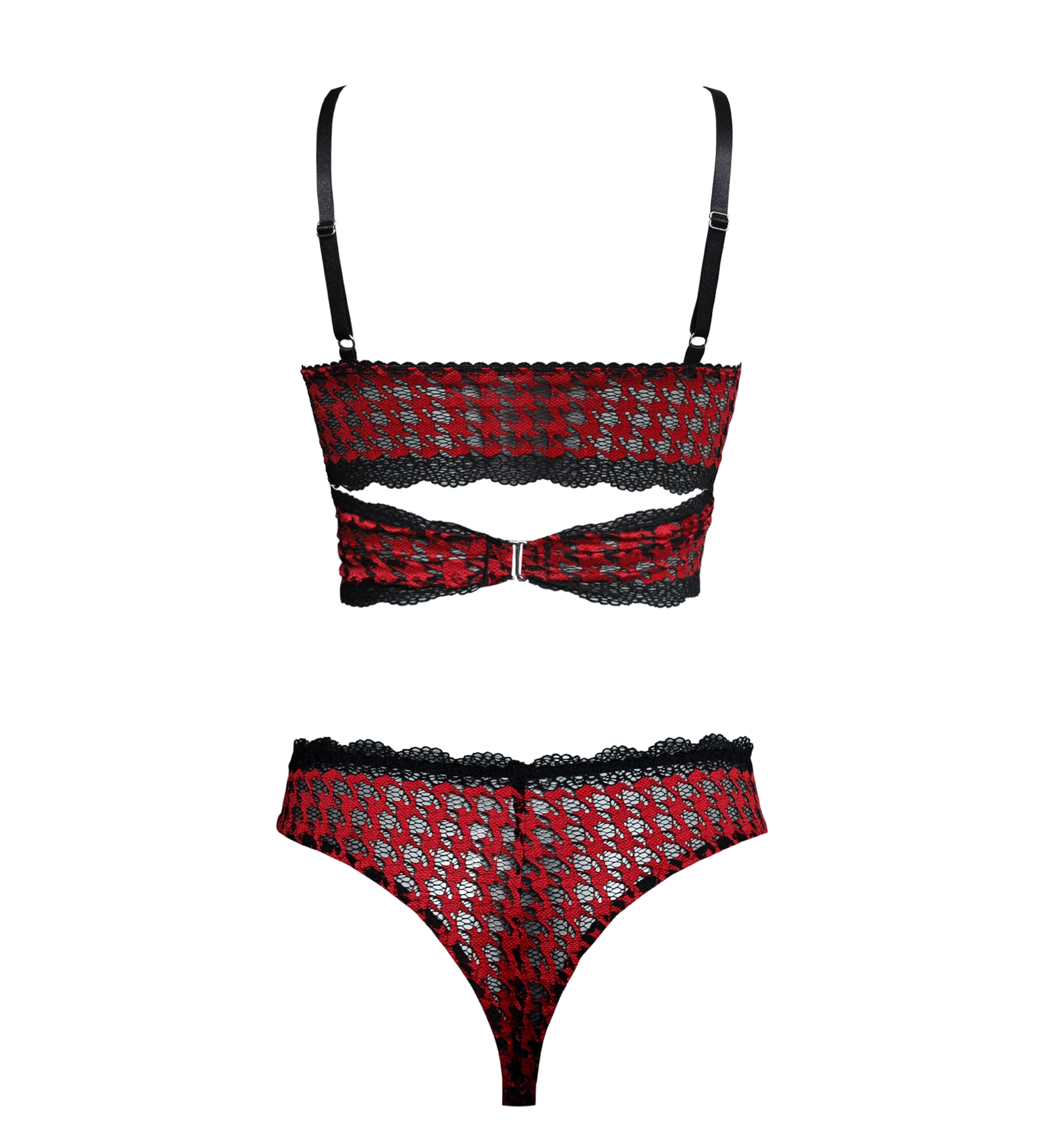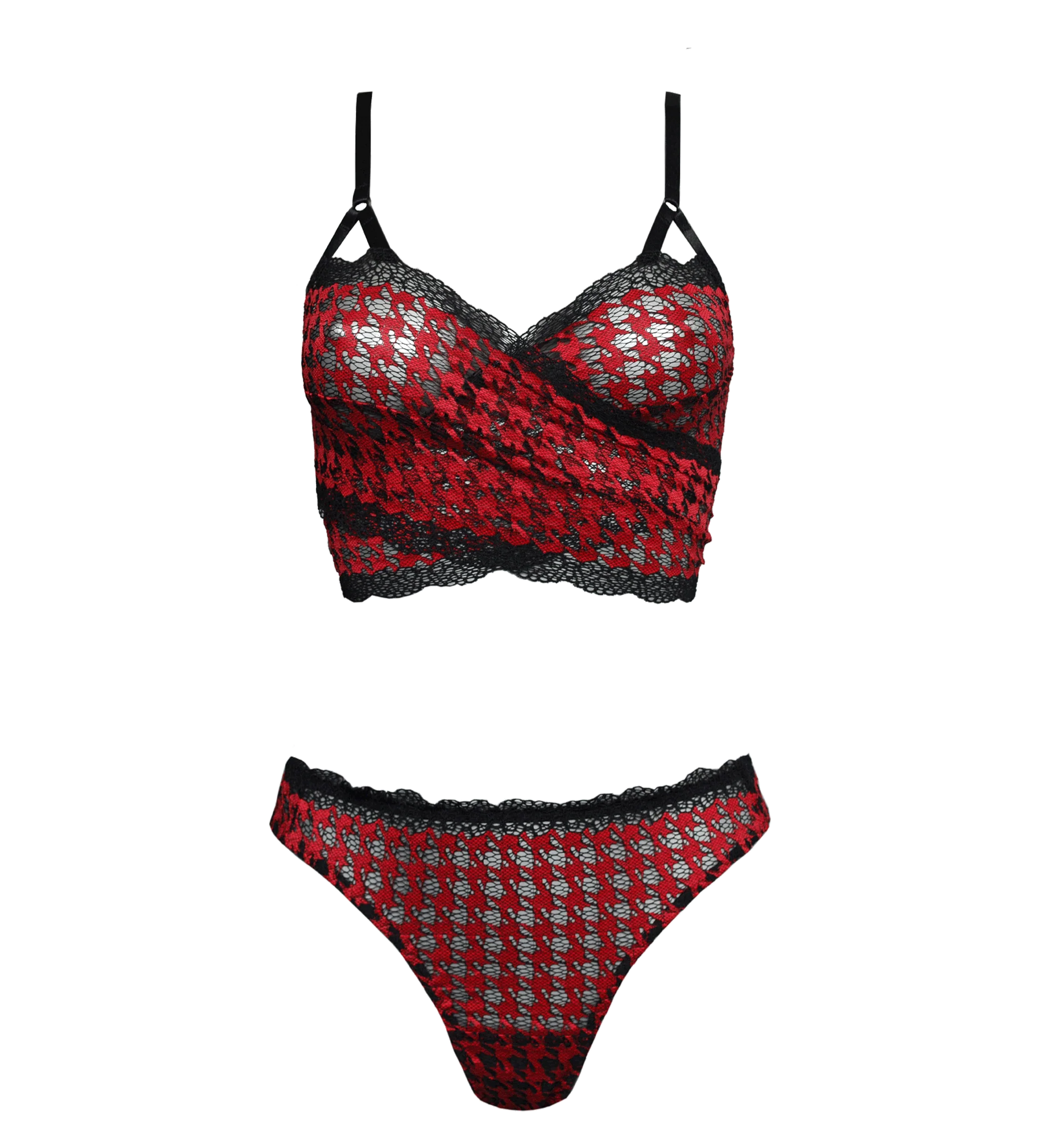 High comfort with a dash of romance and extravagance, the non-wired bralette is designed with a casual wrap front and closes in the back, making you feel gently yet firmly held in all the right places. Paired with a medium waist thong which is soft and sensual to wear, the complete set has decorative lace edges throughout that gently forms along your natural contours.